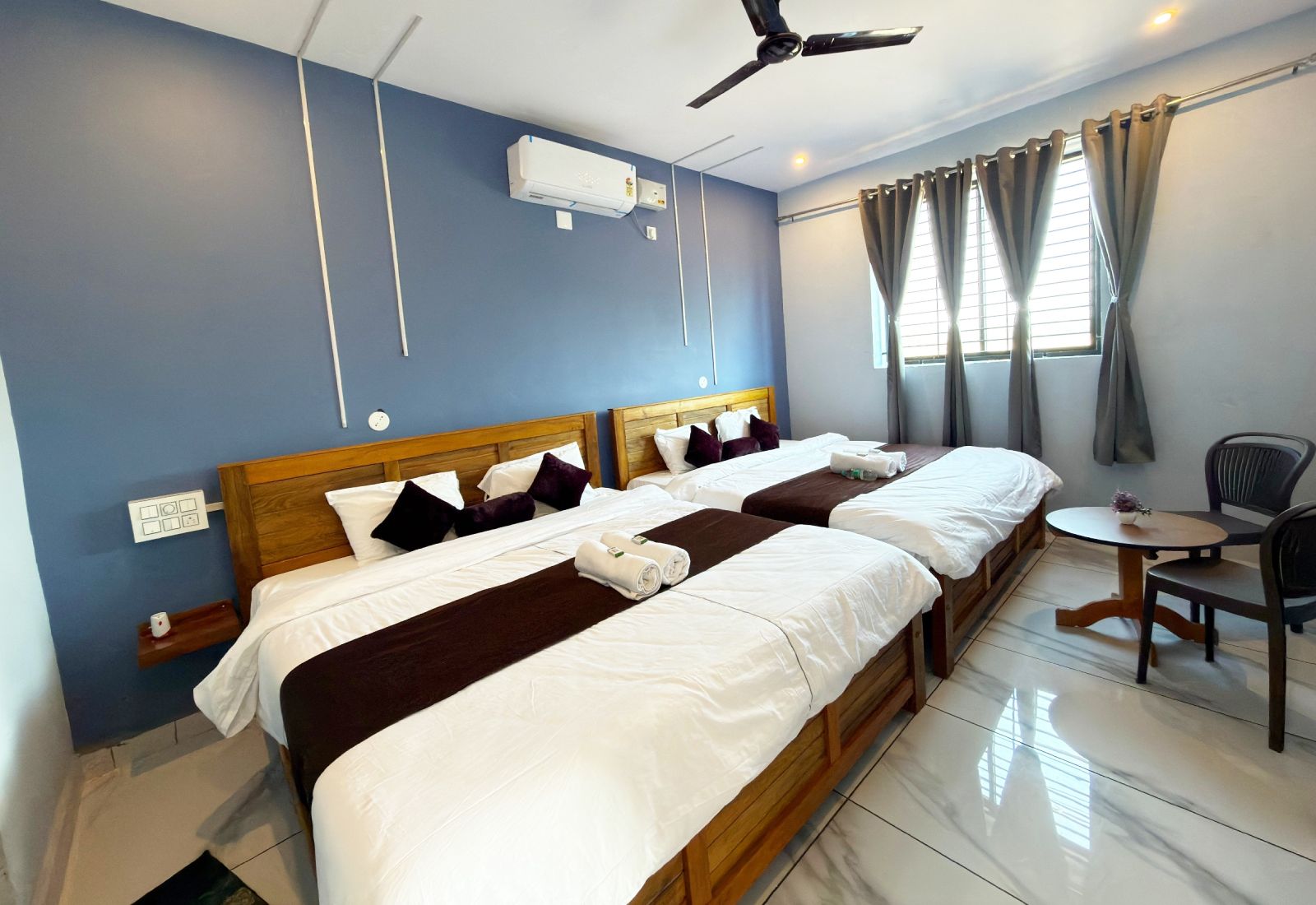 The Multi-Coat AC Rooms are ideal for groups and families, providing comfortable accommodation for 4 adults and 1 child. These spacious rooms feature air-conditioning, multiple beds, and ample space for relaxation.