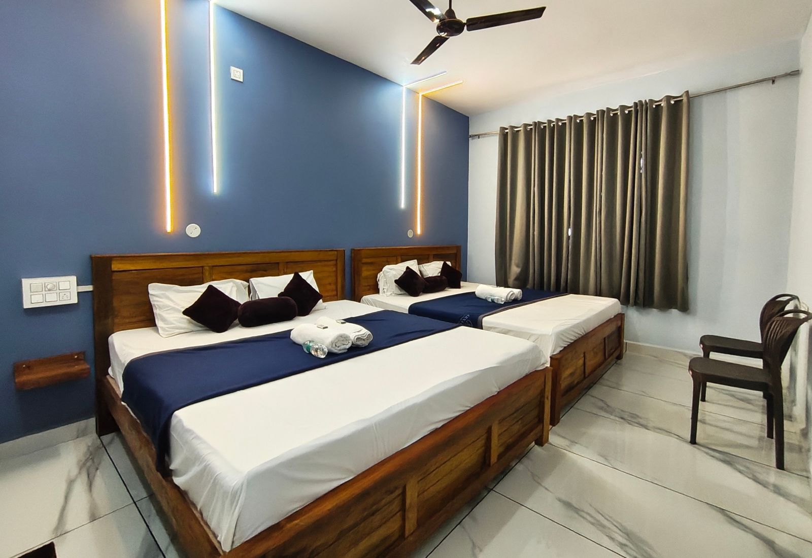 Our Deluxe Non-AC Rooms offer spacious, well-designed accommodation ideal for 2 adults and 1 child. These rooms provide excellent ventilation, quality bedding, and essential amenities to ensure a pleasant stay.